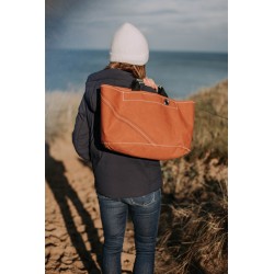 La collection Origine célèbre la matière, la voile brute. Elle est construite à partir de voiles de couleurs unies, intemporelles, en dacron, canvas ou en coton : blanches, terracotta ou bleu cobalt. Elles rappellent les couleurs des voiles des marins au temps de la voile, soit blanche comme chanvre, le lin puis le coton, soit terracotta ou bleu lorsqu’ils pratiquaient la méthode du tannage pour que leurs voiles résistent plus longtemps. Ils en profitaient d’ailleurs pour tanner leur vareuse et leur pantalon de toile.