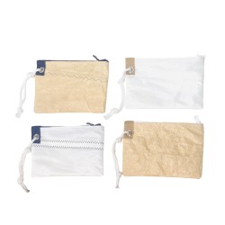 Trousse de toilette idéale et très pratique pour vos besoins! Fine et plate, elle peut se loger dans tous vos sacs à main et se tenir en main avec son petit cordage recyclé.