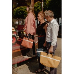 Le tissu en batyline est solide et robuste, vous l'emmènerez partout ! Très agréable à porter grâce aux poignées tressées à la main.