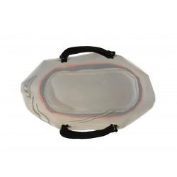 Fait en dacron blanc upcyclée, ce tissu est facile d'entretien. Solide et robuste, vous l'emmenerez partout ! Très agréable à porter grâce aux poignées tressées à la main.