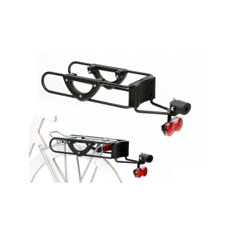 Le système d'accroche vélo pour votre charriot de course Vent de Voyage. Une partie se fixe sur le porte-bagage, l'autre sur votre caddie. Vous n'avez plus qu'à clipser / déclipser pour partir faire vos courses. Des lumières sur les 2 parties garantissent votre sécurité.