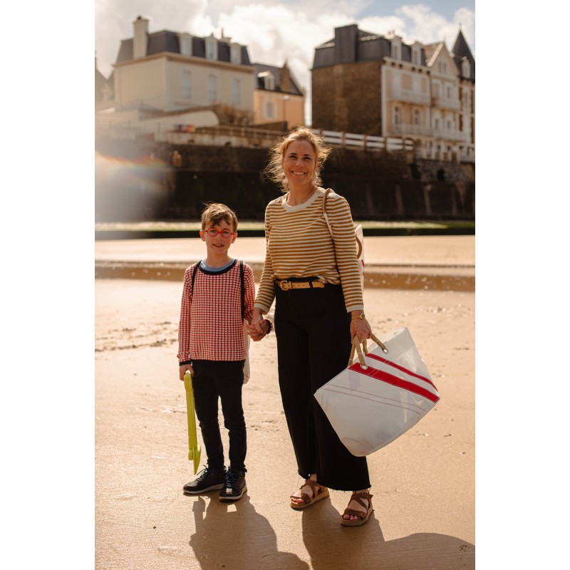 • Sac cabas blanc et rouge en voile les lices l'intérieur