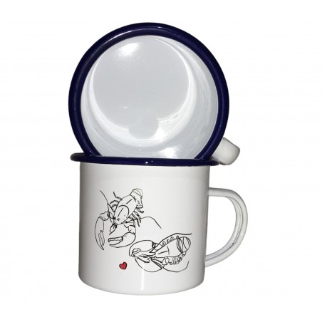Léger et incassable, ce mug passe au lave vaisselle. Tasse émaillée blanche et rebord bleu.