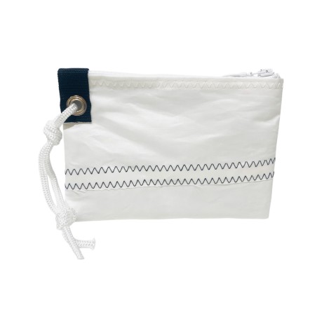 Trousse de toilette idéale et très pratique pour vos besoins! Fine et plate, elle peut se loger dans tous vos sacs à main et se tenir en main avec son petit cordage recyclé.