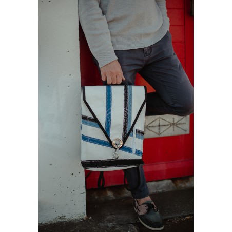 Inspiré par l’univers de la voile, Le Mousqueton évoque les lignes tendues, les textures salées et la liberté du large. Son rabat rappelle le design des voiles, avec une touche graphique unique sur son rabat unique.