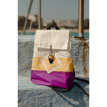 Le Trésor est un vrai bijou de l'océan ! Pratique, il peut être transporté partout et pour toutes les occasions ! Fabriqué en Voile de bateau ayant navigué, il se ferme grâce à son mousqueton central et contient suffisamment de place pour une sortie journalière. Pas trop grand, vous ne cherchez plus vos clefs au fond du sac. Ses anses en bout bleu marine ainsi que son mousqueton sont des détails affirmant son lien fort avec la mer.