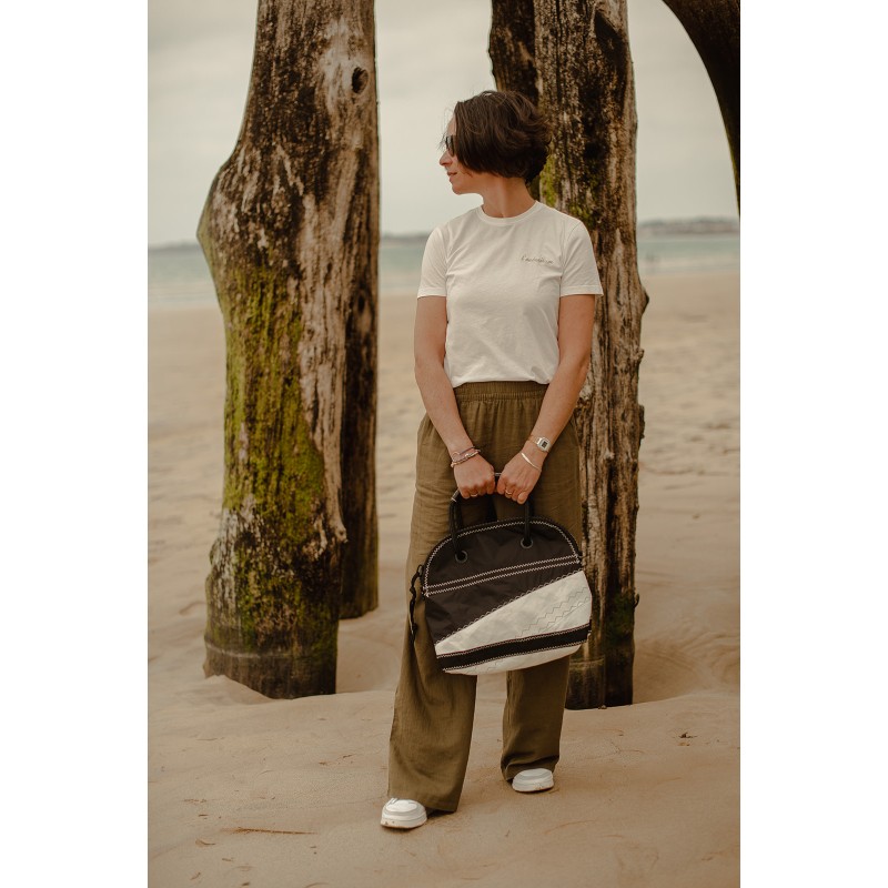 L'incontournable des sacs en voile de bateau recyclée ayant navigué ! Le Jimmy marin rouge et blanc sera votre compagnon pour vos activités diverses. Ce sac à main polyvalent suffisamment spacieux, doté d'une poche intérieure et fermé avec son gros zip noir vous permettra de rester organisé(e) peu importe où vous irez. A la main ou à l'épaule, les anses en bout finition cuir cousues main peuvent se glisser pour un porté plus long à l'épaule.