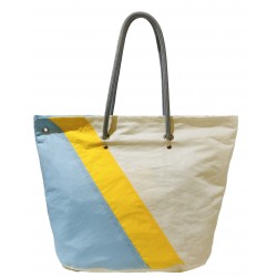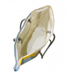 Fait en voile de dacron ayant navigué, il est facile d'entretien. Solide et robuste, vous l'emmènerez partout ! Anses en porté épaule.