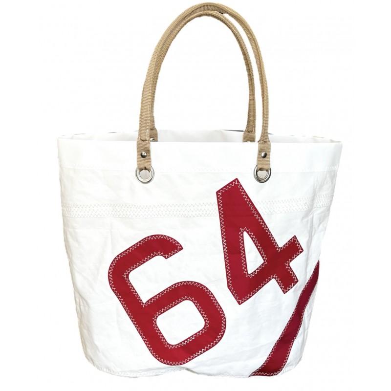 • sac cabas blanc avec numéro rouge, en voile "cowes" du dessus