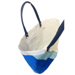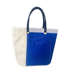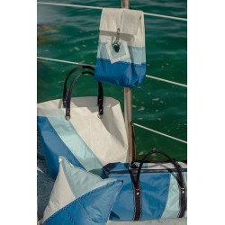 Fait en voile de dacron ayant navigué, il est facile d'entretien. Solide et robuste, vous l'emmènerez partout ! Anses en porté épaule.