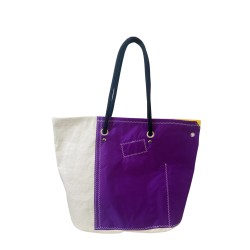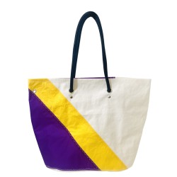 Fait en voile de dacron ayant navigué, il est facile d'entretien. Solide et robuste, vous l'emmènerez partout ! Anses en porté épaule.