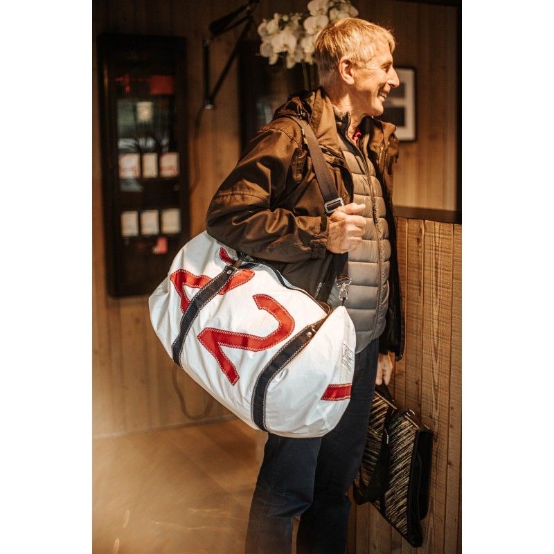 Ce grand sac polochon est parfait pour partir en voyage ! Spacieux et souple, vous l'emmènerez dans chacune de vos aventures. Vous pouvez le portez à la main ou à l'épaule en bandoulière grâce à ses deux anses. La voile recyclée et son numéro affirment son identité marine authentique.
