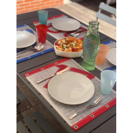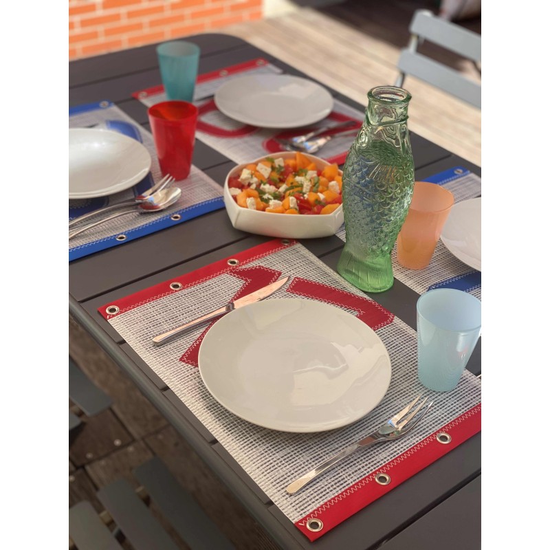 Nouveaux arrivage de sets de table, en voile technique blanche, côtés et numéros rouge.