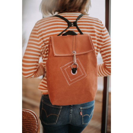 The Treasure backpack in sail of old rigging, the Terracotta color canva. An original veil, used for the old boats, which skates in time. A color for the city and the sea in all seasons!