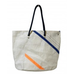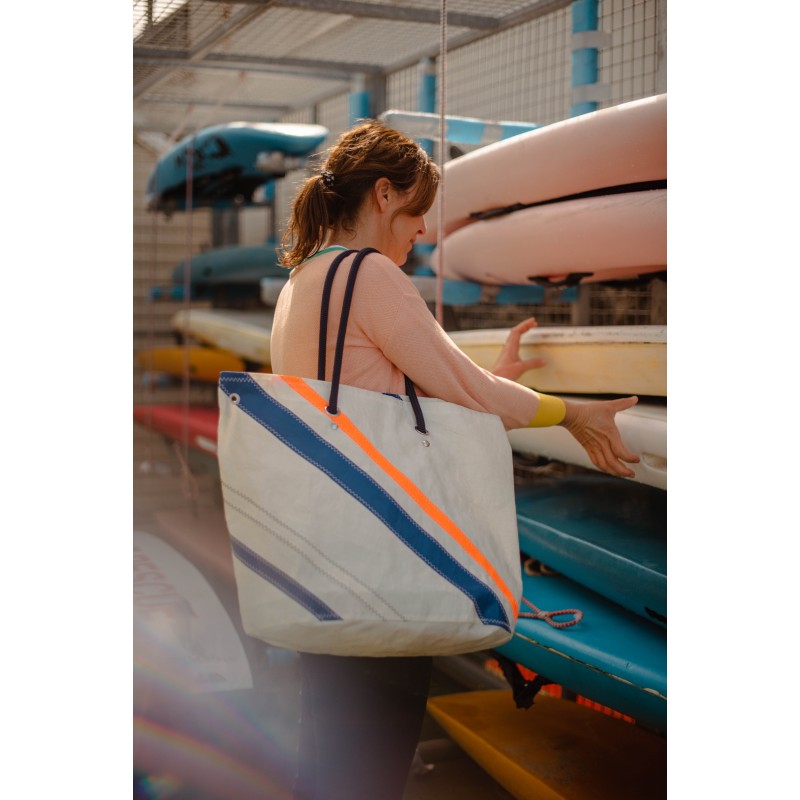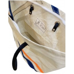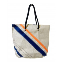 Beach Bag Sailcloth Navy Blue and Orange Stripes Cowes