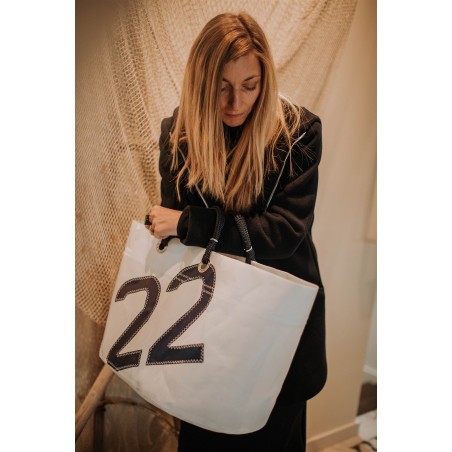 This large declassified boat sail cabas is spacious enough for a day at the sea or in the countryside. You can store the picnic for the whole family, beach toys and several towels. Lices wear a red, blue or black number depending on your taste. The dark blue braided handles are very pleasant and will support the weight of your business.