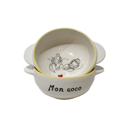 Breton bowl Lobsters heart "Mon coco" My sweetheart - 2 handles bowl - Sketch by artist Morgane Chouin