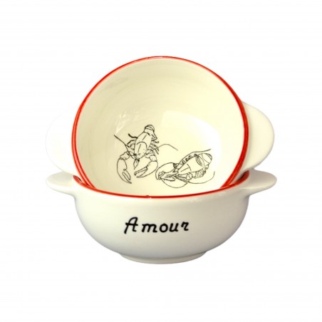 Breton Bowl Lobsters Heart "Amour" - 2 handles bowl - Sketch by artist Morgane Chouin