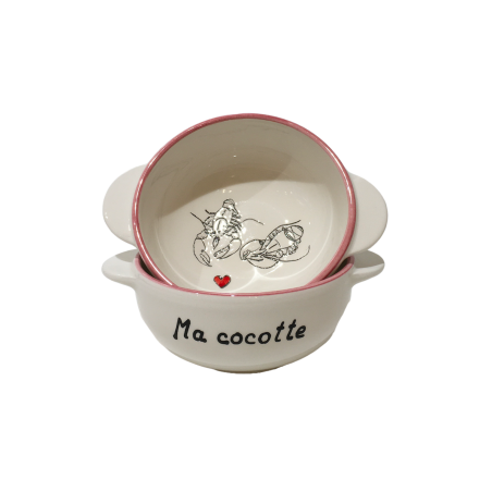 Breton bowl lobster heart "Ma cocotte" My darling - 2 handles bowl - Sketch by artist Morgane Chouin