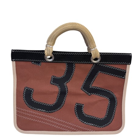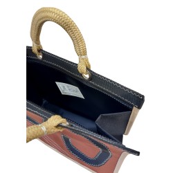 Hand-held, its handles are very flexible thanks to hand-made braiding, even with a consequent weight in the bag.
