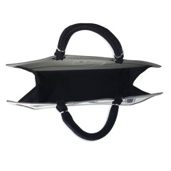 Hand-held, its handles are very flexible thanks to hand-made braiding, even with a consequent weight in the bag.