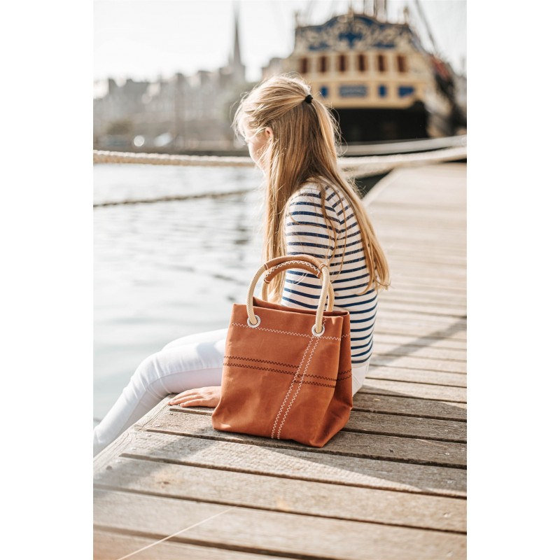 Its sliding handles allow you to carry it over your shoulder, keeping your hands free. The sturdy canvas material used for traditional sailing sails is durable and easy to care for. Finished with hand-stitched leather trim, it offers a pleasant feel. An interior pocket provides storage for essentials you want to keep close at hand.