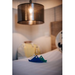 This small boat-shaped keychain exists in several colors. You can also use it as a decoration object in a child or pendant room on a beach bag. We always find the zigzag seam and a tip that you can hang with its nickel-plated eyelet.