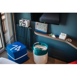 This pouf is made in the workshop Vent de Voyage located in Dinard in Brittany, and is therefore 100% Made in France.