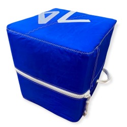 Coloured Dacron sail (blue or red). Holds a white number and is closed by a white zipper.