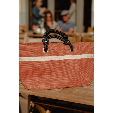 In parallel to the principle of sack sacks, we have embarked on a partnership with the company Fermob. By recovering their batyline fabrics used for garden chair seating, we had the idea of making them La Conchée cabas and Caddies.