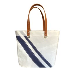 Recycled white dacron sail, with italian leather handles and marine stripes.