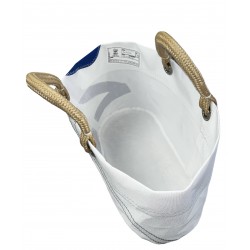 Made of upcycled white dacron, this fabric is easy to maintain. Solid and robust, you'll take it everywhere! Very pleasant to wear thanks to hand-tighted handles.