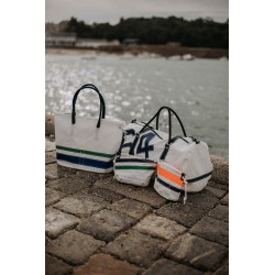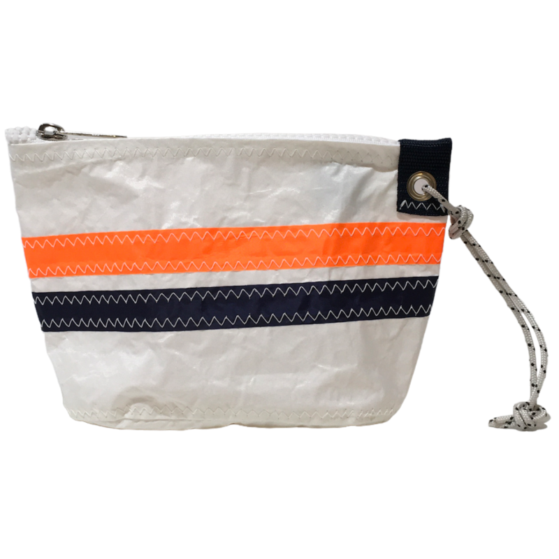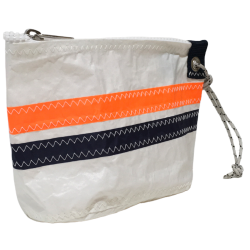 Made of sail having sailed, authentic black and white zigzag seam, you can use it to store several things. An internal pocket will allow you to store your most valuable business like keys or papers. Closed by a zipper, contains a small tip to hold it somewhere or hold it, small inner pocket.