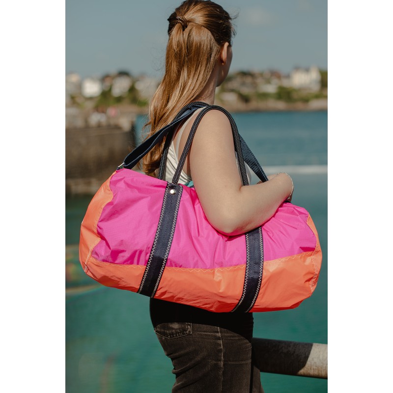 This beautiful colorful polochon bag would be perfect for a weekend or to store your sports stuff! Made of recycled spi, there is in Yellow / Red Orange, in Blue Ocean / Purple, in Orange / Blue King / Navy Blue and in Rose / Purple.