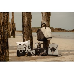 The James bag of the marine collection exists in blue and white! Made of recycled dacron veil, the spi veil adds a pretty color to your bag. The outer pocket will allow you to keep your personal items nearby. With enough space to store your personal effects, it has a wide zipper and cord straps with a hand sewn leather handle.